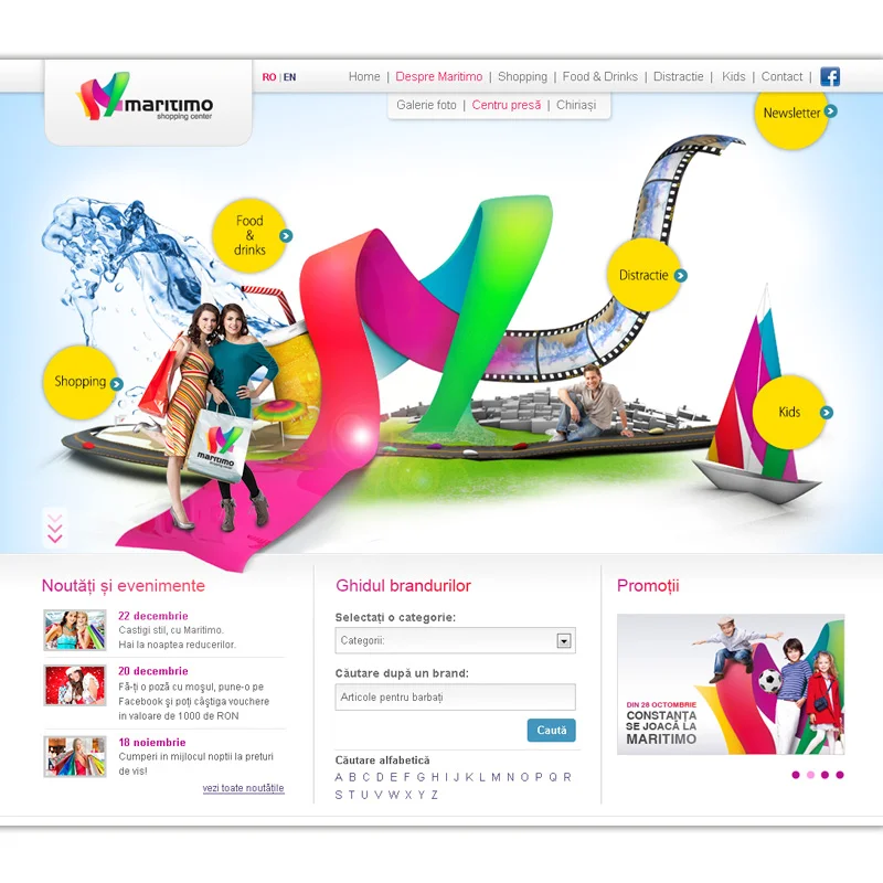While building the largest shopping center at the Romanian seaside, IMMOFINANZ Group asked HIPPOS to create the project’s branding. After a rigorous process, we designed an identity that encloses the dynamics and energy of the sea environment, the idea of entertainment variety and intersecting roads. Further on, we built a bold & colorful launch campaign, perfectly suited for the newly born Maritimo brand.
